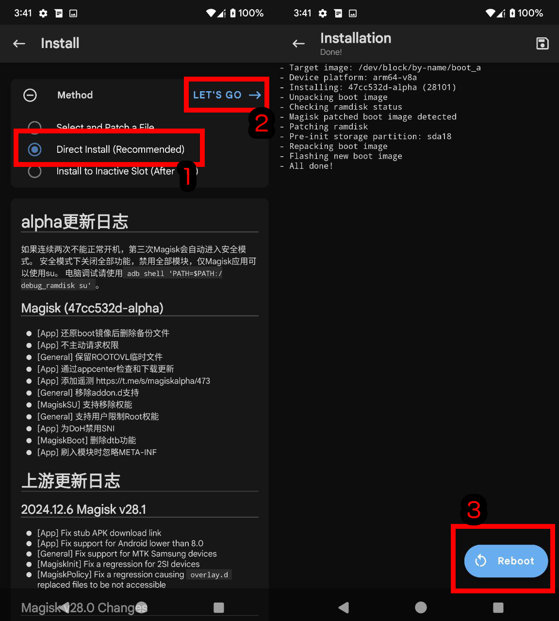 ติดตั้งแอป Magisk ด้วย .apk และเข้า Fastboot อีกครั้ง